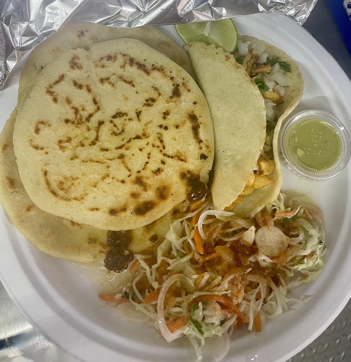Tacos, pupusas, baleadas and quesadillas (cheese, beans, pork, steak, beef and lengua) and they are amazing! Fast, friendly service and always a smile! Always fresh, and for a great price!